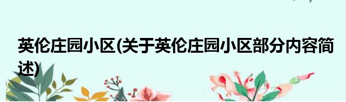 英伦庄园小区(关于英伦庄园小区部分内容简述)