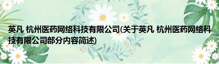 英凡 杭州医药网络科技有限公司(关于英凡 杭州医药网络科技有限公司部分内容简述)