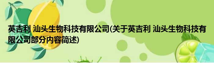英吉利 汕头生物科技有限公司(关于英吉利 汕头生物科技有限公司部分内容简述)