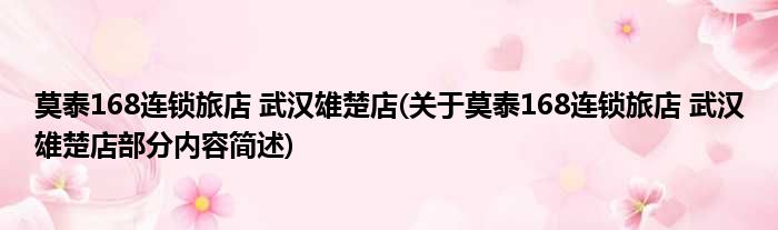 莫泰168连锁旅店 武汉雄楚店(关于莫泰168连锁旅店 武汉雄楚店部分内容简述)