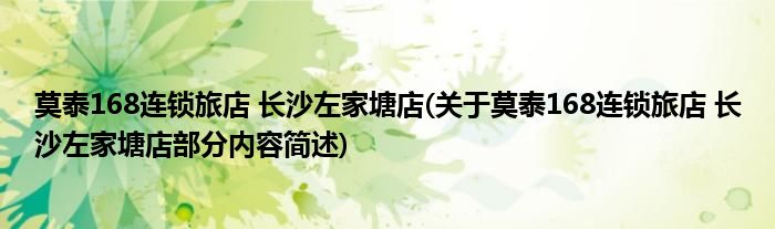 莫泰168连锁旅店 长沙左家塘店(关于莫泰168连锁旅店 长沙左家塘店部分内容简述)