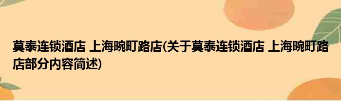 莫泰连锁酒店 上海畹町路店(关于莫泰连锁酒店 上海畹町路店部分内容简述)