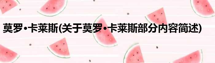 大家好,今天小方来说说一篇关于莫罗·卡莱斯,关于莫罗·卡莱斯部分内容简述的文章,那么现在就为大家来简单介绍下,希望对各位小伙伴们有所帮助。