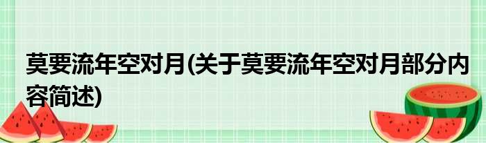 莫要流年空对月(关于莫要流年空对月部分内容简述)