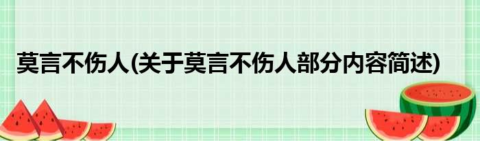 莫言不伤人(关于莫言不伤人部分内容简述)