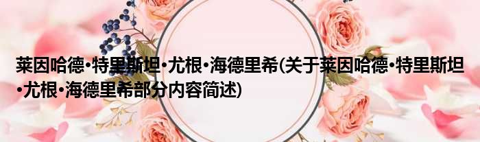 莱因哈德·特里斯坦·尤根·海德里希(关于莱因哈德·特里斯坦·尤根·海德里希部分内容简述)