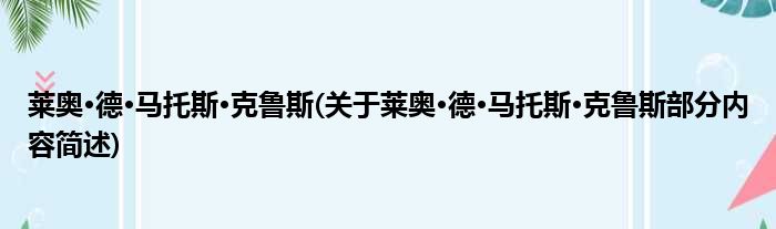 莱奥·德·马托斯·克鲁斯(关于莱奥·德·马托斯·克鲁斯部分内容简述)
