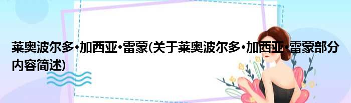 导读 大家好,今天小方来说说一篇关于莱奥波尔多·加西亚·雷蒙,关于莱奥波尔多·加西亚·雷蒙部分内容简述的文章,那么现在就为大家来简单介绍