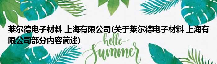 导读 大家好,今天小方来说说一篇关于莱尔德电子材料 上海有限公司,关于莱尔德电子材料 上海有限公司部分内容简述的文章,那么现在就为大家来