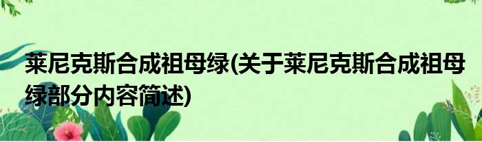 莱尼克斯合成祖母绿(关于莱尼克斯合成祖母绿部分内容简述)