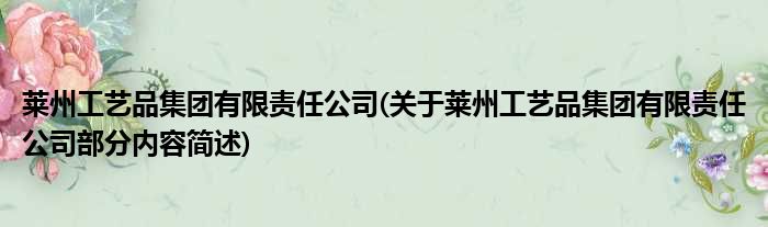 莱州工艺品集团有限责任公司(关于莱州工艺品集团有限责任公司部分内容简述)