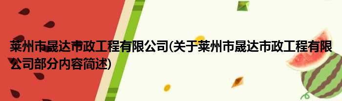 莱州市晟达市政工程有限公司(关于莱州市晟达市政工程有限公司部分内容简述)