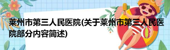 莱州市第三人民医院(关于莱州市第三人民医院部分内容简述)