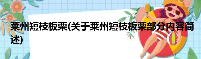 莱州短枝板栗(关于莱州短枝板栗部分内容简述)