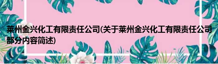 莱州金兴化工有限责任公司(关于莱州金兴化工有限责任公司部分内容简述)