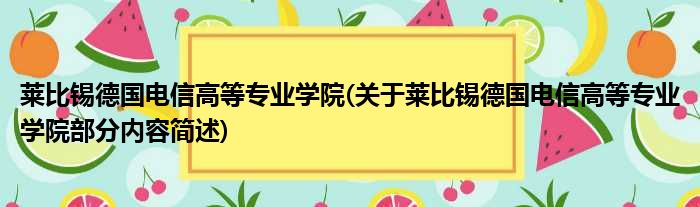 莱比锡德国电信高等专业学院(关于莱比锡德国电信高等专业学院部分内容简述)