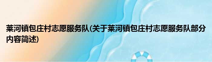 莱河镇包庄村志愿服务队(关于莱河镇包庄村志愿服务队部分内容简述)