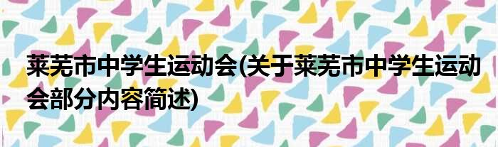 莱芜市中学生运动会(关于莱芜市中学生运动会部分内容简述)
