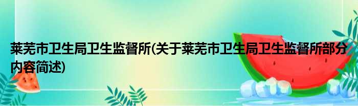 莱芜市卫生局卫生监督所(关于莱芜市卫生局卫生监督所部分内容简述)