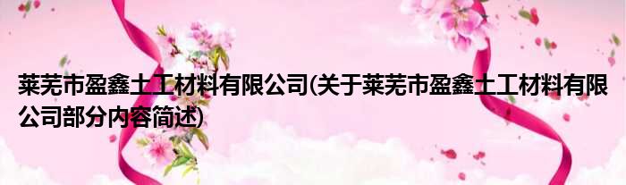 莱芜市盈鑫土工材料有限公司(关于莱芜市盈鑫土工材料有限公司部分内容简述)