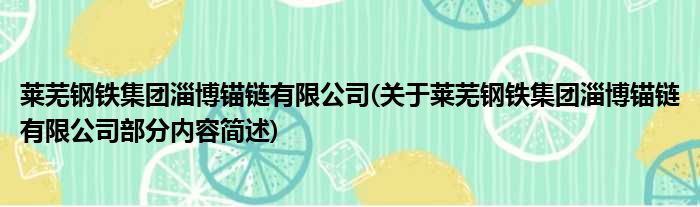 莱芜钢铁集团淄博锚链有限公司(关于莱芜钢铁集团淄博锚链有限公司部分内容简述)