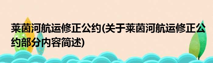 导读 大家好,今天小方来说说一篇关于莱茵河航运修正公约,关于莱茵河航运修正公约部分内容简述的文章,那么现在就为大家来简单介绍下,希望对各