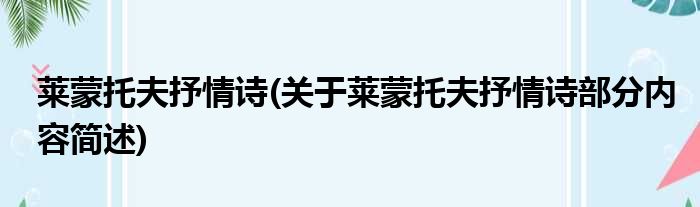 莱蒙托夫抒情诗(关于莱蒙托夫抒情诗部分内容简述)