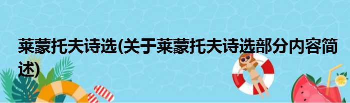 莱蒙托夫诗选(关于莱蒙托夫诗选部分内容简述)