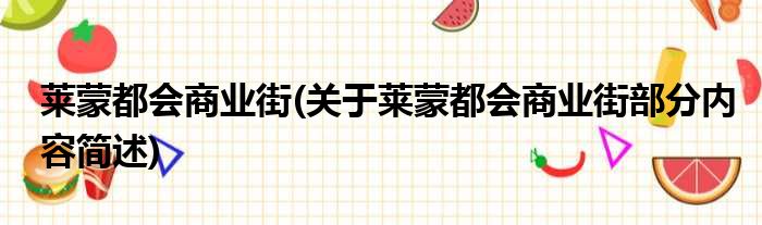 莱蒙都会商业街(关于莱蒙都会商业街部分内容简述)