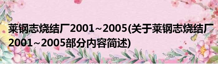 莱钢志烧结厂2001~2005(关于莱钢志烧结厂2001~2005部分内容简述)