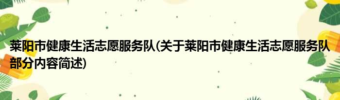 莱阳市健康生活志愿服务队(关于莱阳市健康生活志愿服务队部分内容简述)