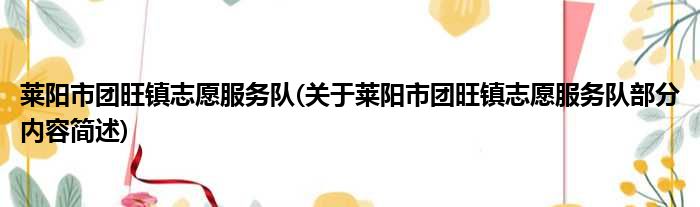 莱阳市团旺镇志愿服务队(关于莱阳市团旺镇志愿服务队部分内容简述)