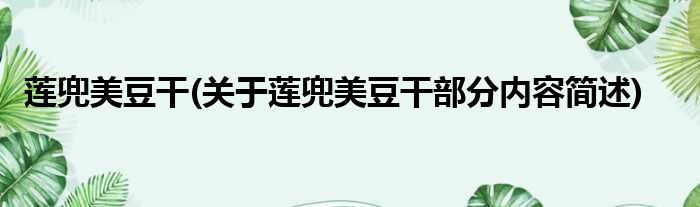 莲兜美豆干(关于莲兜美豆干部分内容简述)