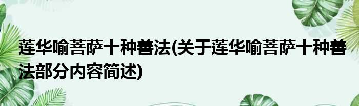 莲华喻菩萨十种善法(关于莲华喻菩萨十种善法部分内容简述)