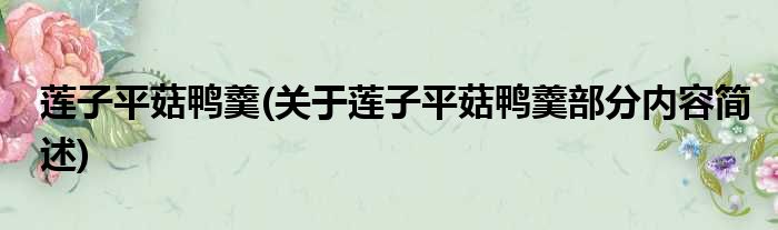 莲子平菇鸭羹(关于莲子平菇鸭羹部分内容简述)
