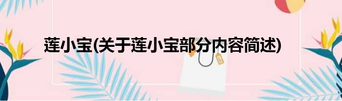 大家好,今天小方来说说一篇关于莲小宝,关于莲小宝部分内容简述的文章,那么现在就为大家来简单介绍下,希望对各位小伙伴们有所帮助。