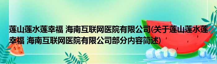莲山莲水莲幸福 海南互联网医院有限公司(关于莲山莲水莲幸福 海南互联网医院有限公司部分内容简述)