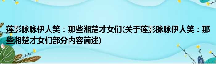 莲影脉脉伊人笑:那些湘楚才女们(关于莲影脉脉伊人笑:那些湘楚才女们部分内容简述)