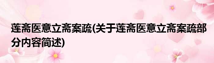 莲斋医意立斋案疏(关于莲斋医意立斋案疏部分内容简述)