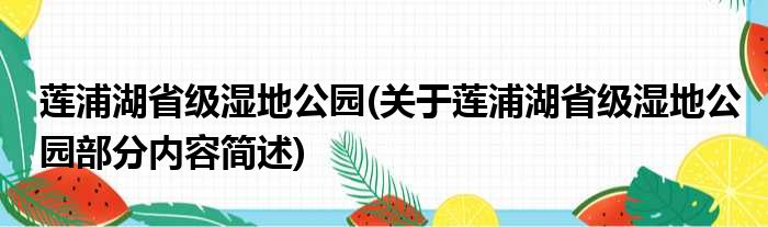 莲浦湖省级湿地公园(关于莲浦湖省级湿地公园部分内容简述)