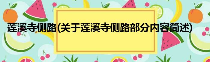 莲溪寺侧路(关于莲溪寺侧路部分内容简述)