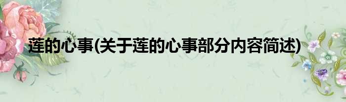 导读 大家好,今天小方来说说一篇关于莲的心事,关于莲的心事部分内容简述的文章,那么现在就为大家来简单介绍下,希望对各位小伙伴们有所帮助。