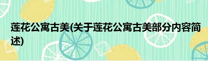 莲花公寓古美(关于莲花公寓古美部分内容简述)