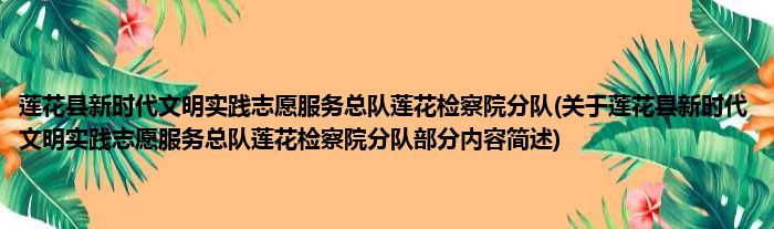 莲花县新时代文明实践志愿服务总队莲花检察院分队(关于莲花县新时代文明实践志愿服务总队莲花检察院分队部分内容简述)