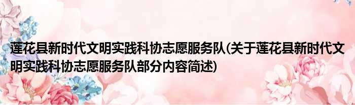 莲花县新时代文明实践科协志愿服务队(关于莲花县新时代文明实践科协志愿服务队部分内容简述)