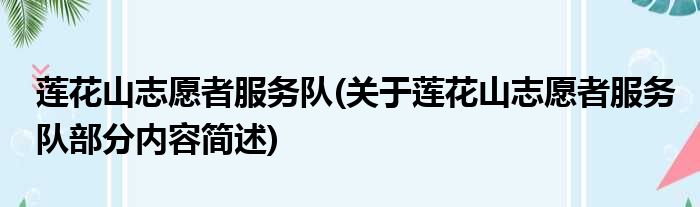 莲花山志愿者服务队(关于莲花山志愿者服务队部分内容简述)