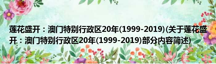 导读 大家好,今天小方来说说一篇关于莲花盛开:澳门特别行政区20年,1999-2019,关于莲花盛开:澳门特别行政区20年,1999-2019部分内容简述的文