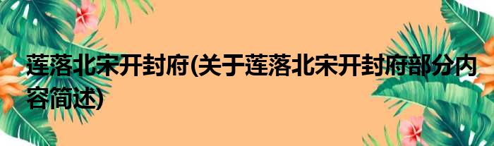 莲落北宋开封府(关于莲落北宋开封府部分内容简述)