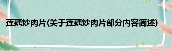 莲藕炒肉片(关于莲藕炒肉片部分内容简述)