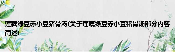 莲藕绿豆赤小豆猪骨汤(关于莲藕绿豆赤小豆猪骨汤部分内容简述)
